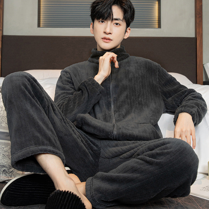 This men's jumpsuit is designed as a single piece with long sleeves and a covering cut. It is intended for home use or for calm outdoor activities in cold temperatures. Its full design offers complete coverage suitable for winter seasons.